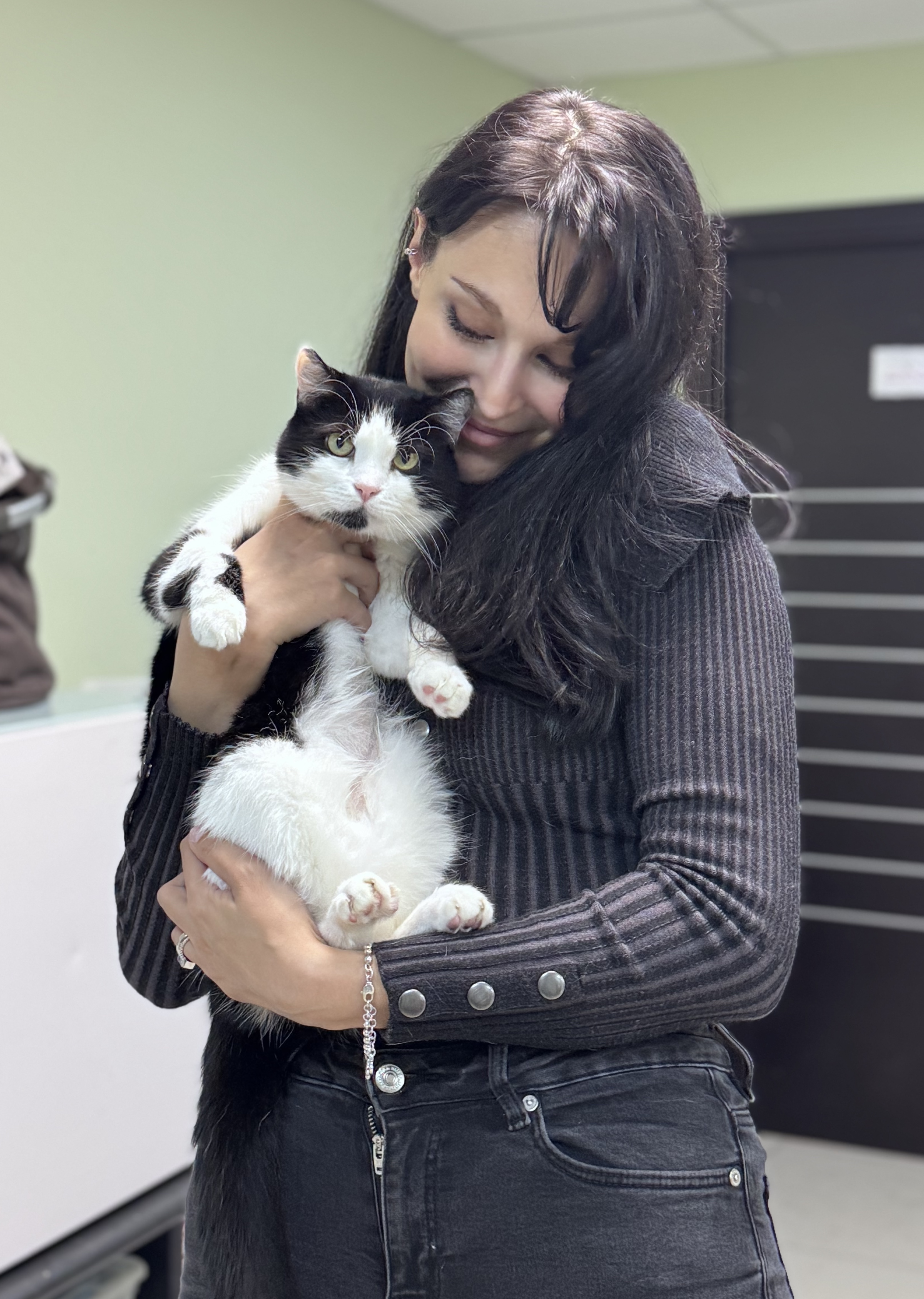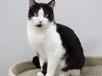 Эта чёрно-белая красавица отлично уживается с усатыми соседями — так что, если у вас уже есть котик, прибытие Флоры в дом не будет проблемой. Заполните анкету, если хотели бы подарить Флоре дом