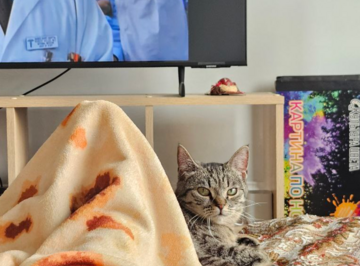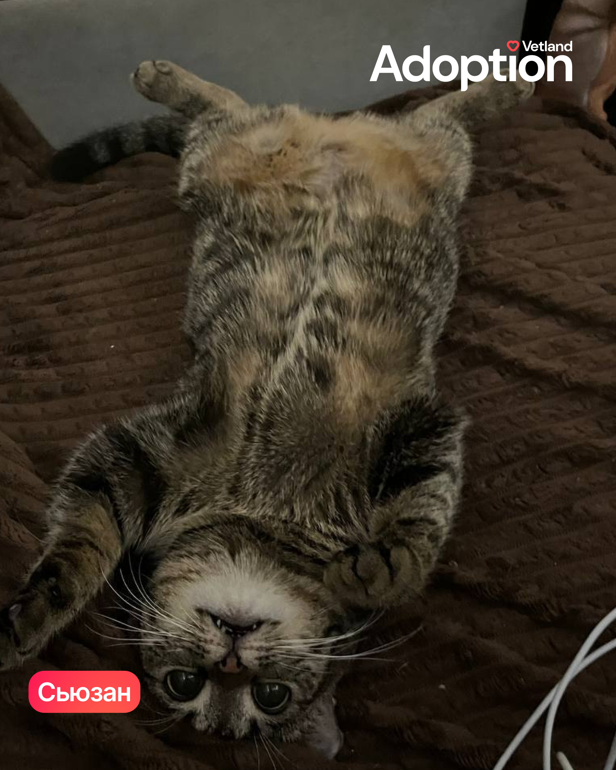 Пока что Сьюзан не очень доверяет человеку и не спешит с ним обниматься и нежиться. Но вот устроить совместные игры — запросто. Недоверие Сьюзан связано с тем, что она никогда не была домашней и из поступков человека помнит лишь то, как её упаковали в коробку и подкинули к воротам приюта.