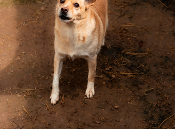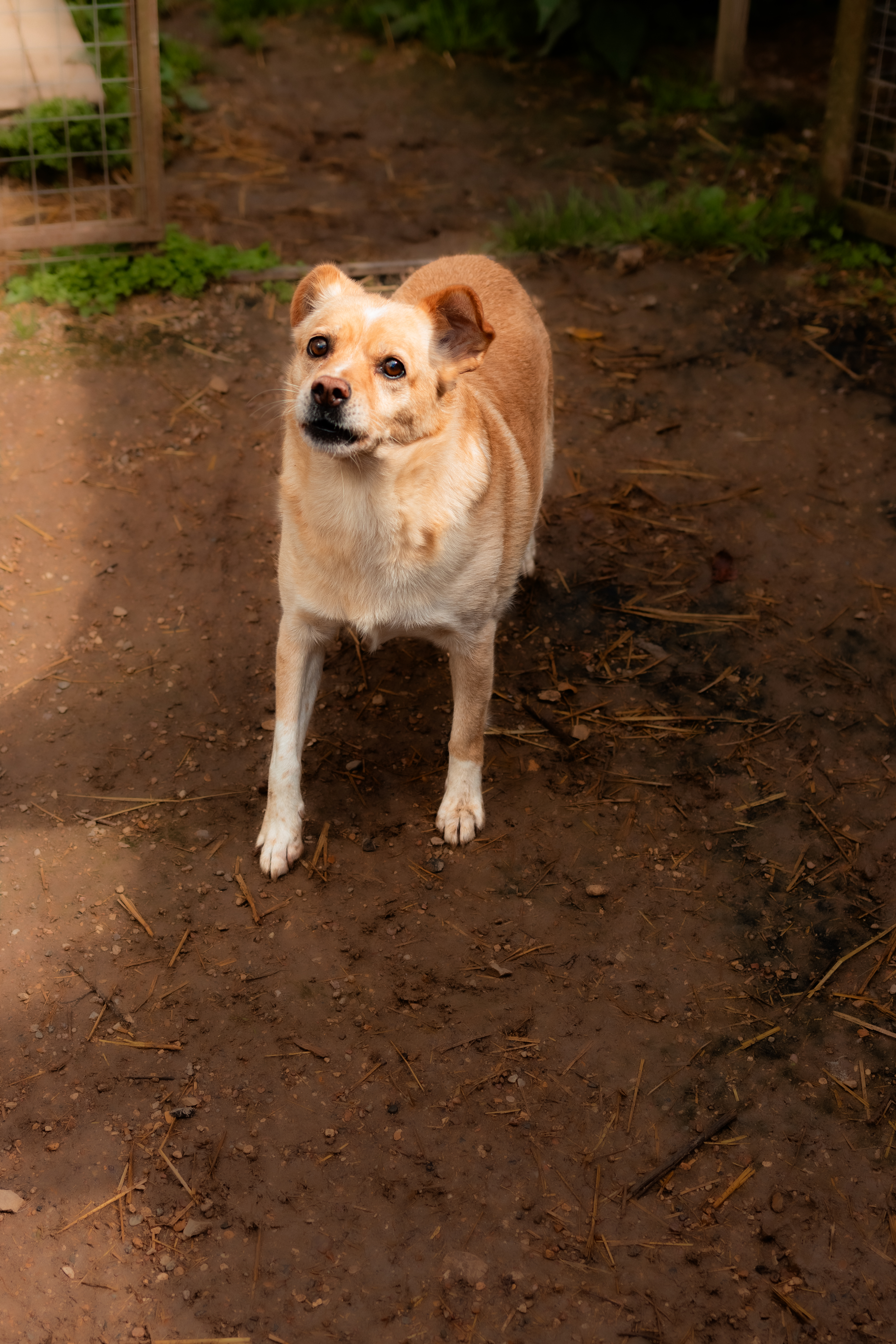 Бука — маленькая, но с характером. Её имя идеально ей подходит: она настороженно смотрит на незнакомцев, может громко гавкнуть, если кто-то подойдёт слишком близко, и не торопится доверять. Но за этой осторожностью скрывается не злость, а страх: когда-то Бука с братом Скулом были совсем малышами и прибились к одной школе. Люди тогда проходили мимо них, пока волонтёры не приехали и не забрали их в безопасное место.