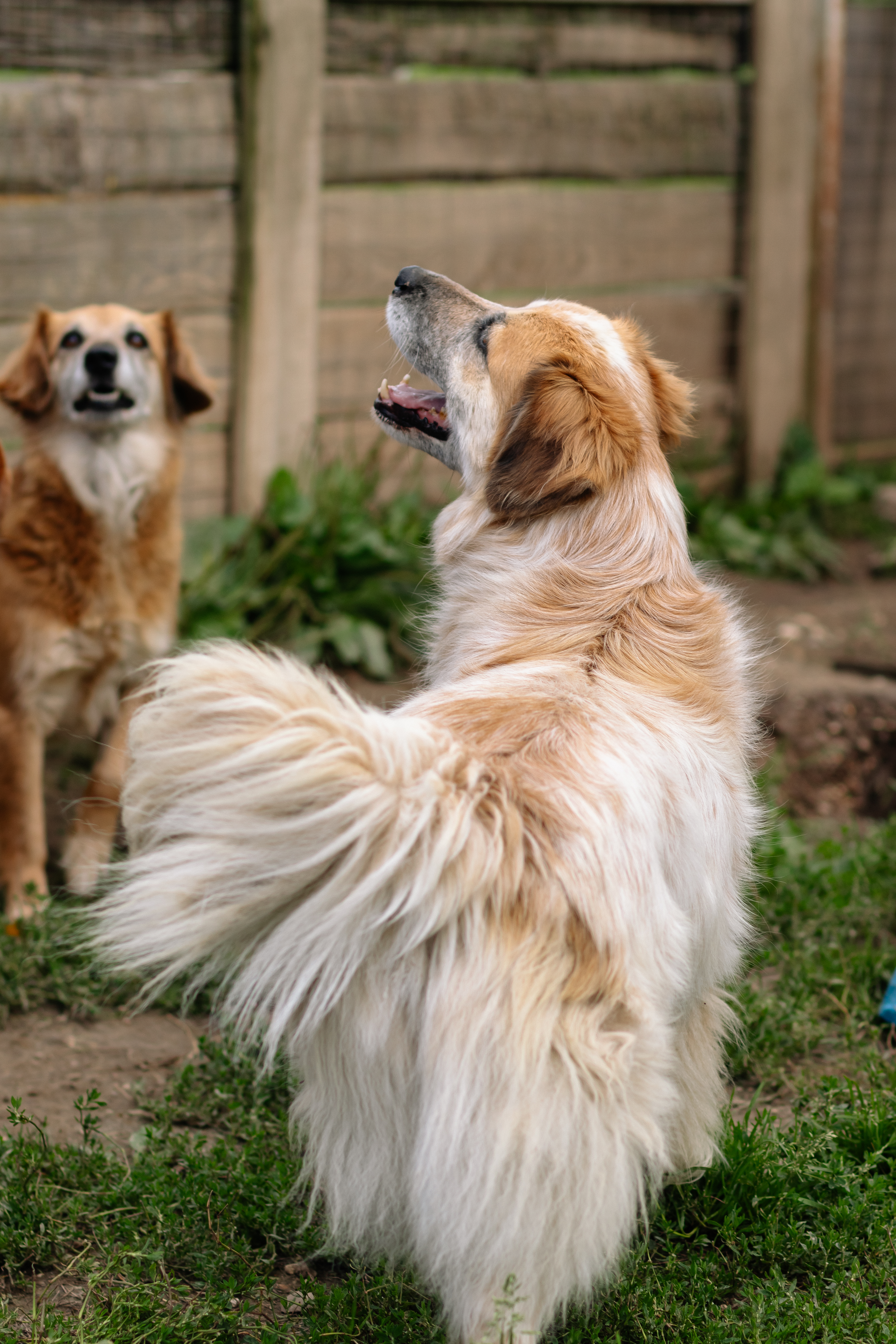 Кабачок даже не представляет, какой он красивый пёс! Компактный, ниже колена, но при этом выглядит эффектно: густая бело-рыжая шерсть с редким мраморным окрасом, мягкие уши, выразительные глаза. На солнце его шерсть буквально светится — такого пса невозможно не заметить.