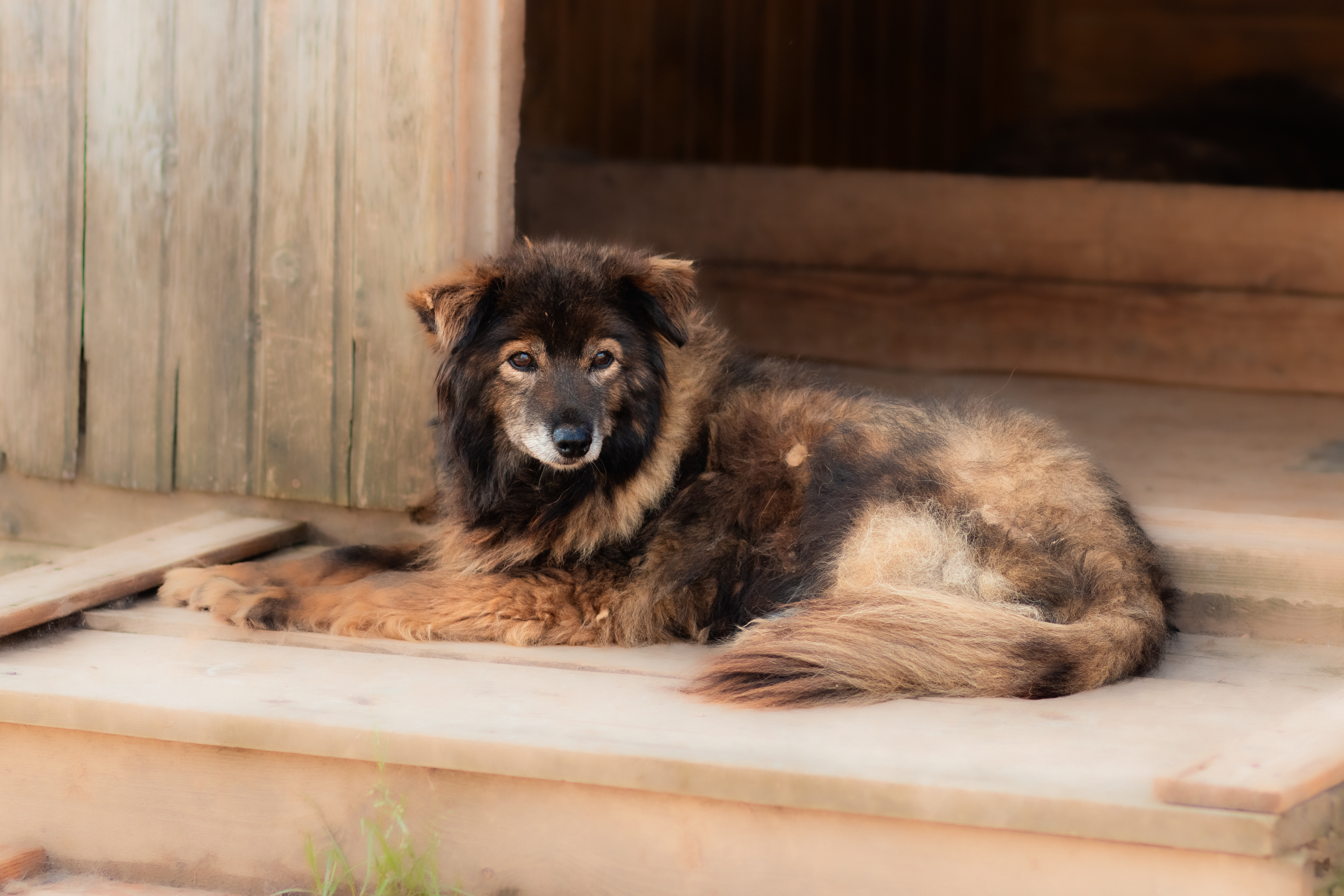 С людьми у Куси всё тоньше. Похоже, опыта общения у неё было немного. Но интерес есть — это видно. Она наблюдает, аккуратно тянется к контакту, будто проверяет: можно ли доверять. В ней нет агрессии, есть осторожность и внутренняя неуверенность. Ей нужно время, чтобы понять, что человек — это безопасно. Когда-то Куся жила на территории завода ЗИЛ. Когда там началась стройка, нас попросили забрать собаку. Так она оказалась в приюте.
