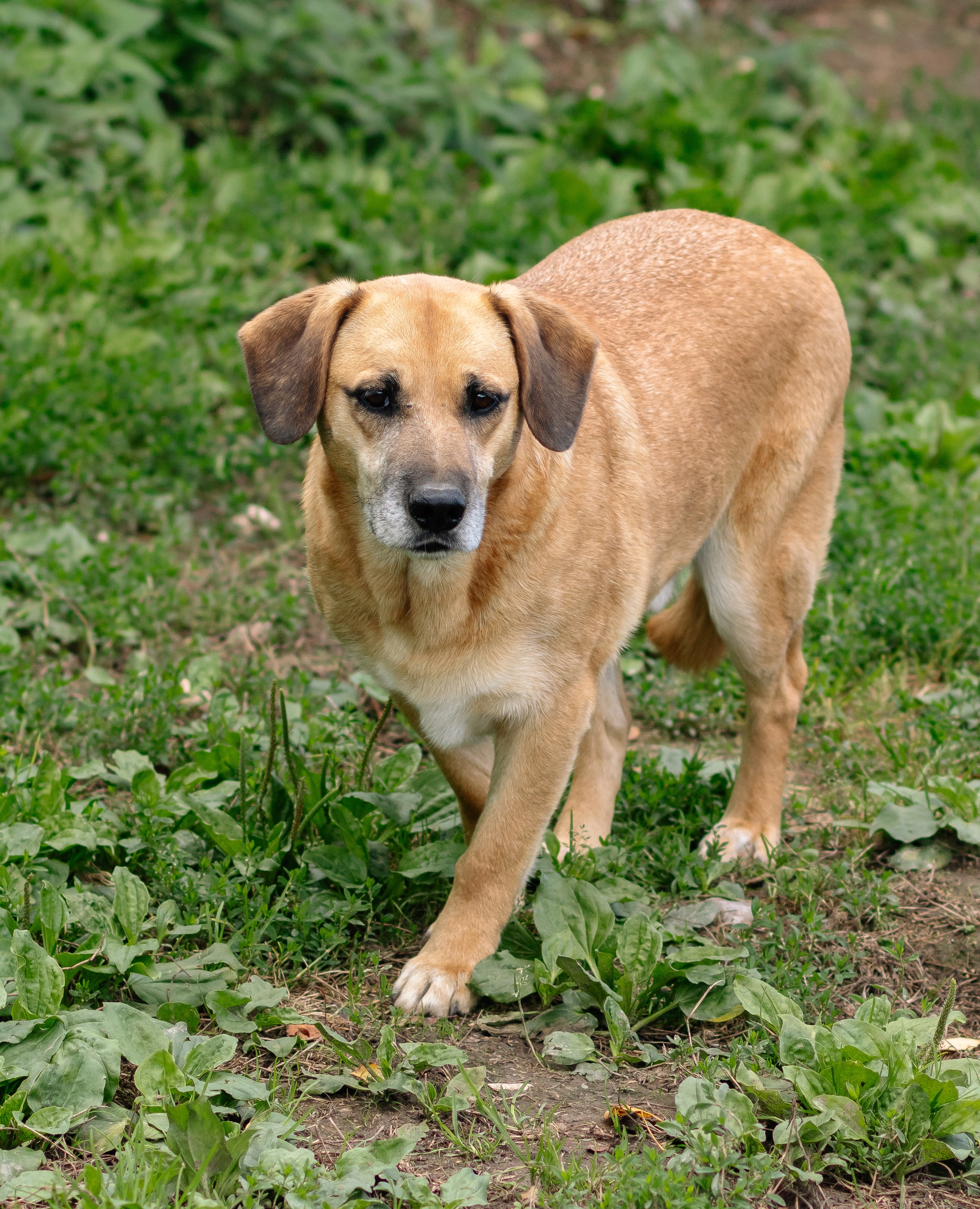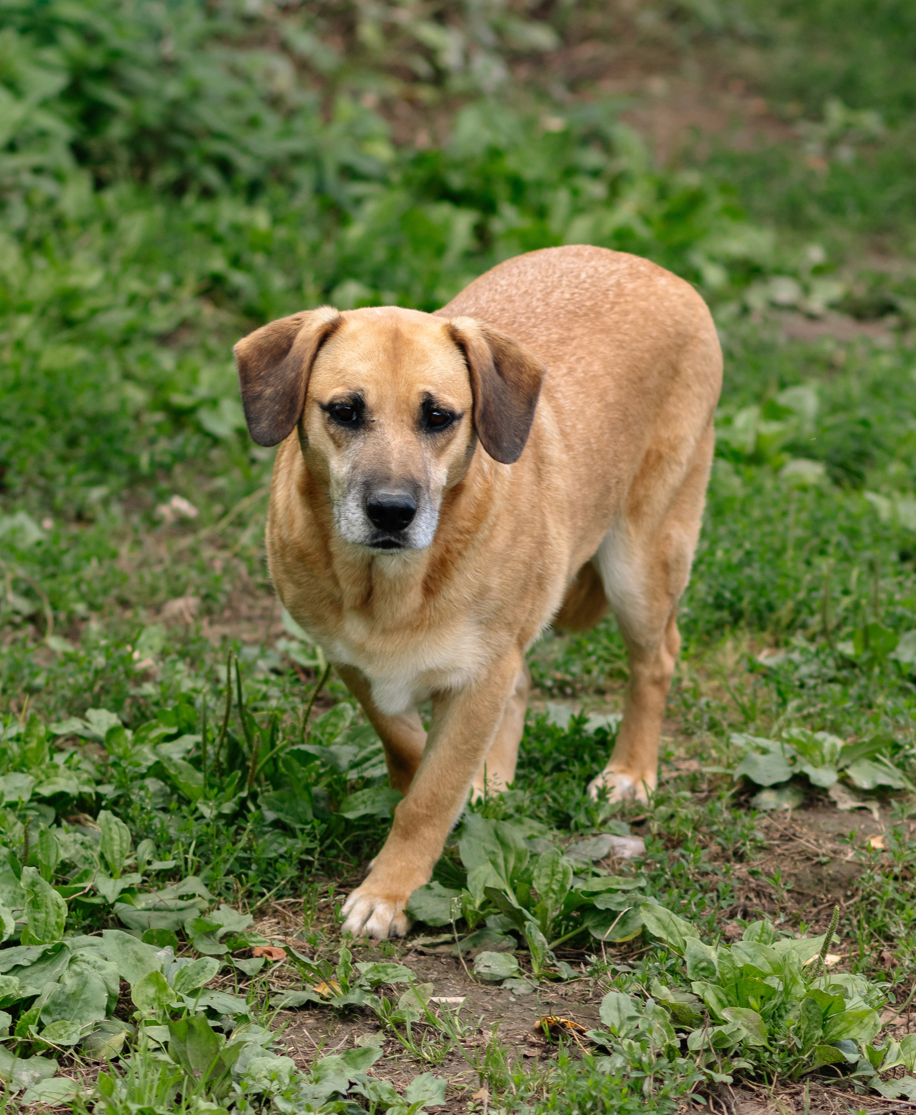 Он небольшой, компактный, ниже колена. По характеру — тихий, внимательный, держится чуть в стороне, пока не поймёт, что рядом безопасно. Не бросается навстречу, не лезет первым — напротив, делает пару шагов назад, присматривается, оценивает. Но за этой боязливостью нет агрессии. Помидор не кусается, не рычит — он просто боится. И страх, вероятно, остался с тех времён, когда он ещё щенком боролся за жизнь.