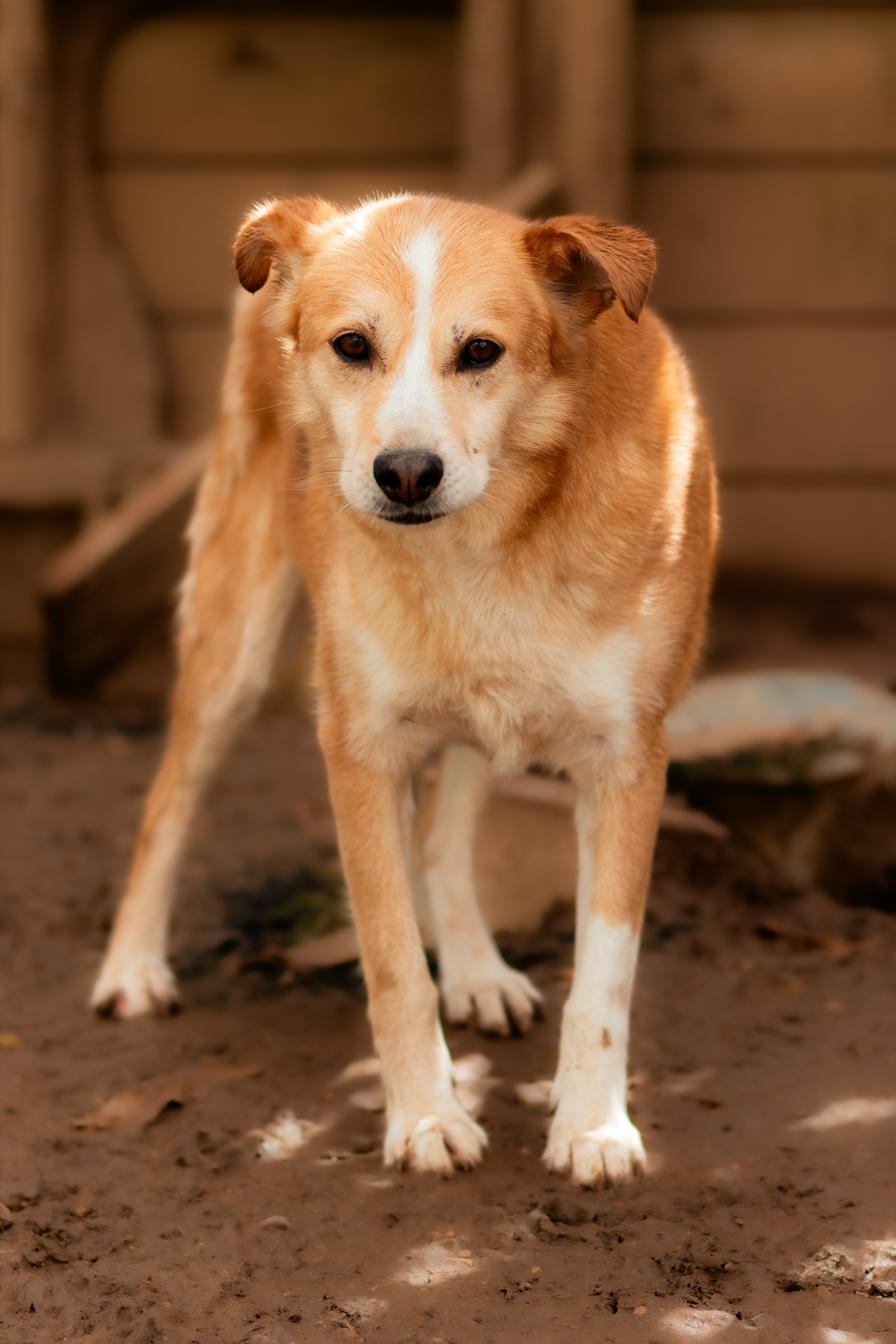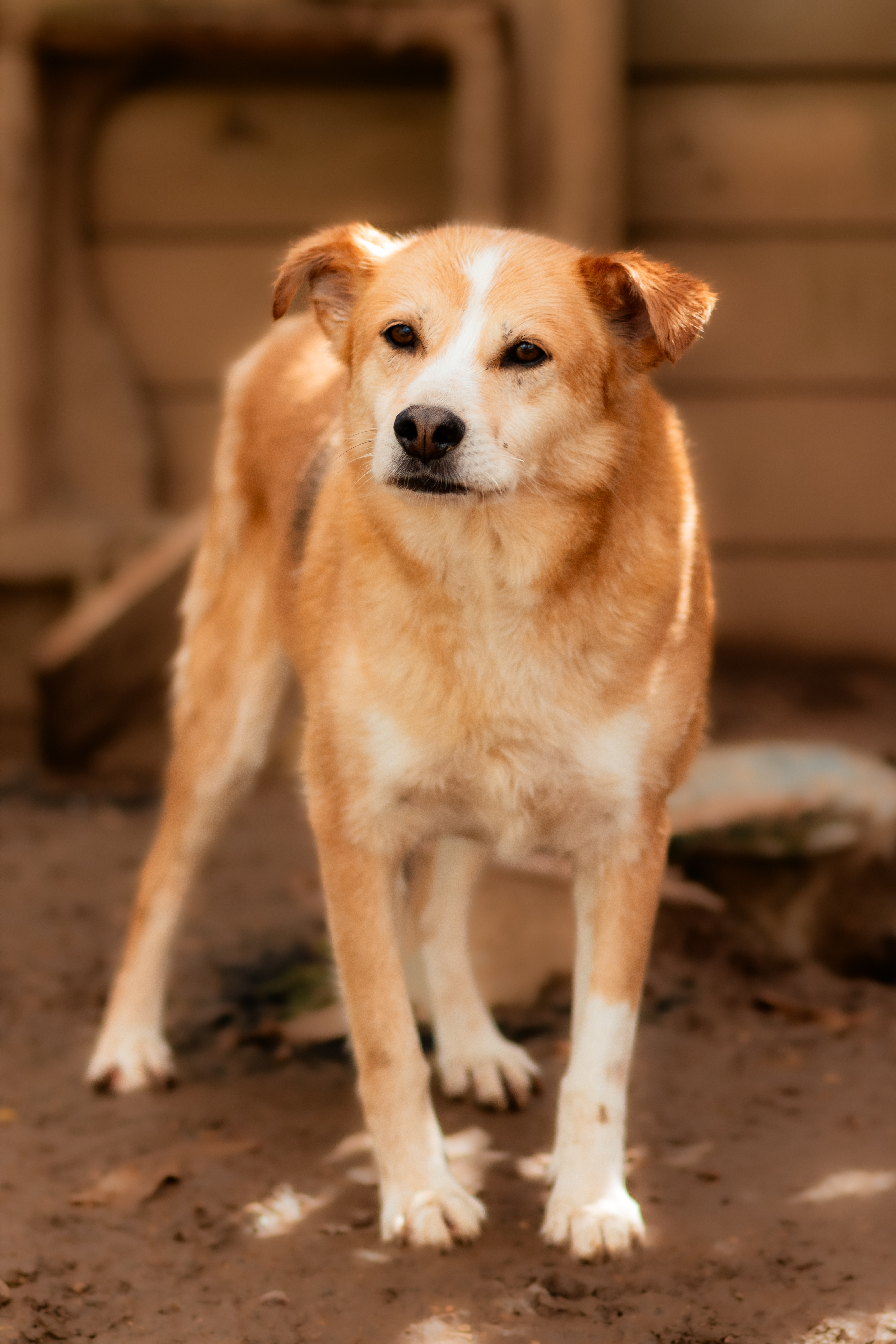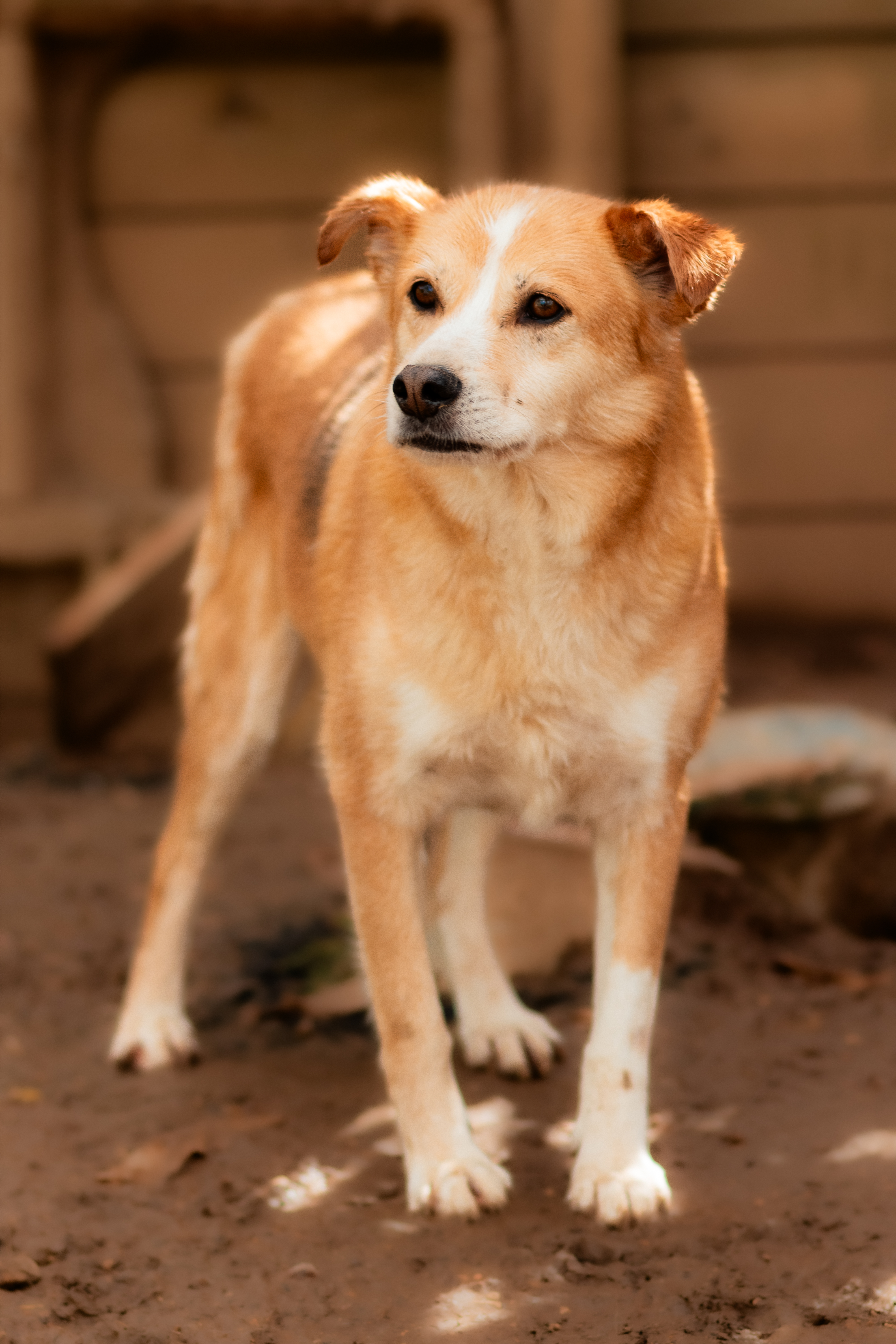 Он среднего размера, с густой рыжевато-белой шерстью и умными глазами, в которых читается всё: настороженность, благодарность, желание понять человека. Скул не бросается навстречу сразу, он сначала наблюдает, прислушивается, словно оценивает, можно ли доверять. Но когда решение принято, он становится удивительно спокойным другом.
